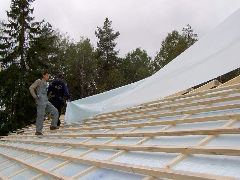 De laatste laag van vandaag wordt aangebracht, zedat nu de helft van het dak bedekt is.